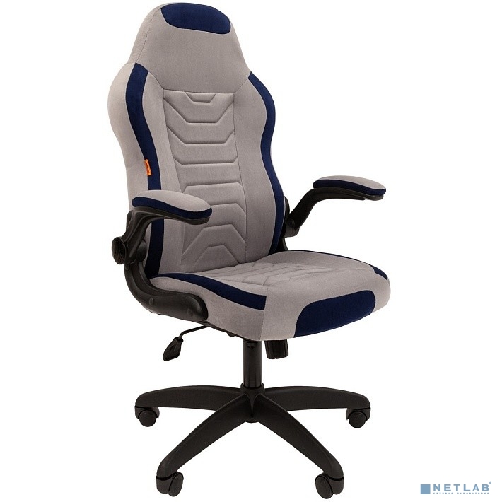 Кресло Chairman game 50 Россия серый/синий велюр Т53/Т82 пластик черный (7115872)