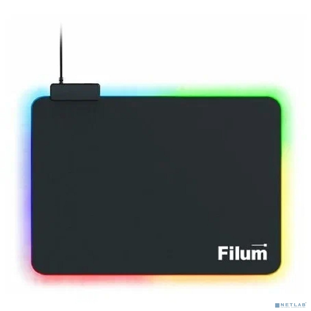 Filum FL-MPL-M-GAME Коврик игровой для мыши, серия- Bulldozer, черный, подсветка, оверлок, размер “M”- 350*250*4 мм, ткань+резина.