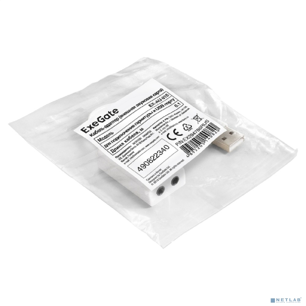 Exegate EX294786RUS Кабель-адаптер (внешняя звуковая карта) ExeGate <EX-AU-01S> для подключения гарнитуры к USB порту, 0,1м
