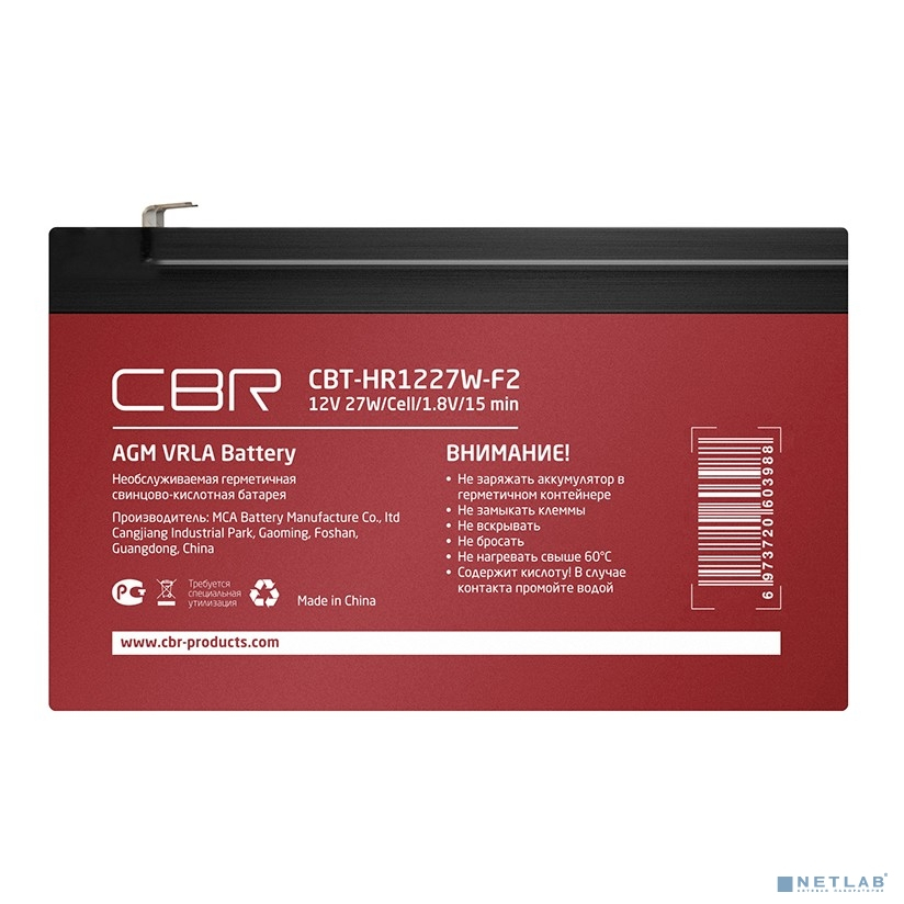CBR Аккумуляторная VRLA батарея CBT-HR1227W-F2 (12В 7.5Ач), клеммы F2