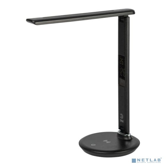 ЭРА Б0057200 Настольный светильник NLED-505-10W-BK светодиодный черный, выбор цвет температуры, три уровня яркости, многофункциональный дисплей с функциями часов, будильника, календаря и термометра.