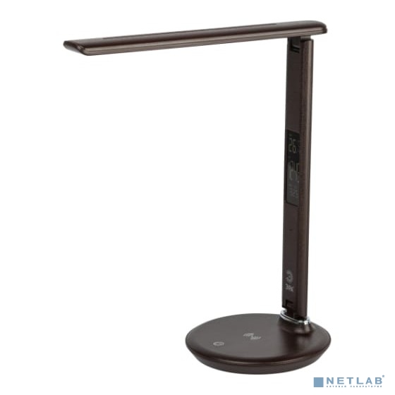 ЭРА Б0057201 Настольный светильник NLED-505-10W-BR светодиодный коричн, выбор цвет температуры, три уровня яркости, многофункциональный дисплей с функциями часов, будильника, календаря и термометра.