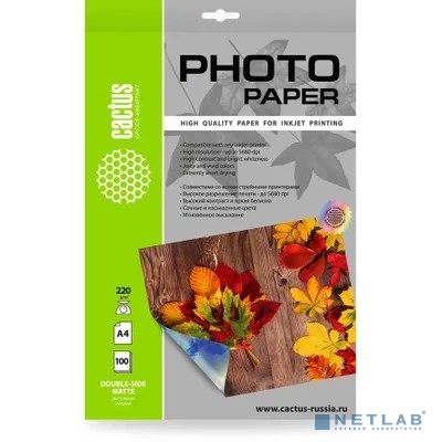 Фотобумага Cactus CS-MA4220100DS, A4, для струйной печати, 100л, 220г/м2, белый, покрытие матовое /матовое