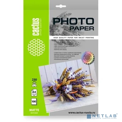 Фотобумага Cactus CS-MA4230100, A4, для струйной печати, 100л, 230г/м2, белый, покрытие матовое