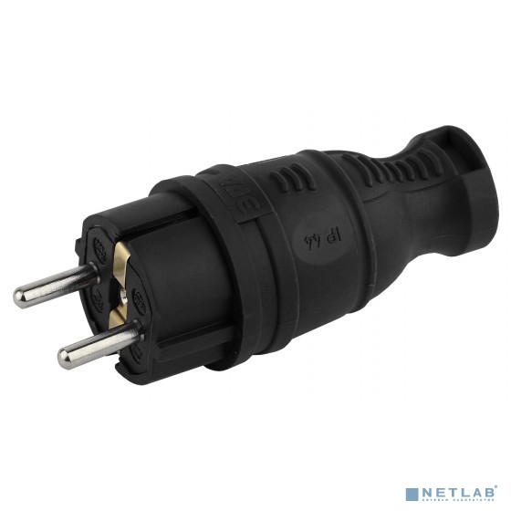 Вилка ЭРА V8-B-IP44 каучуковая с заземлением прямая 16A IP44 черная