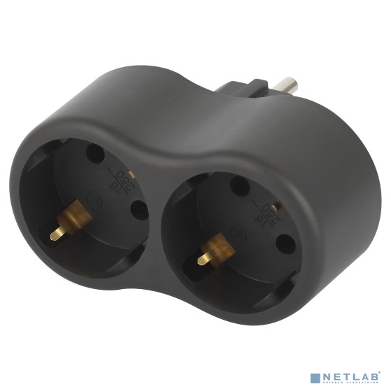 ЭРА Б0059722 Разветвитель электрический SPx-2e-B на 2 розетки с заземлением 16А черный