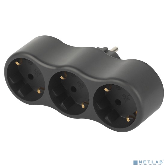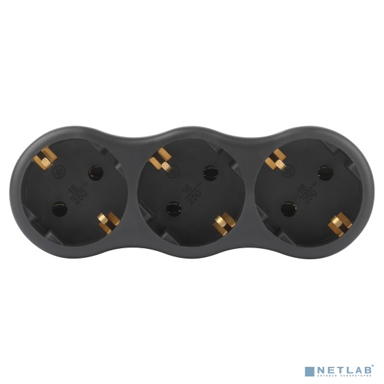 ЭРА Б0059723 Разветвитель электрический SPx-3e-B на 3 розетки с заземлением 16А черный