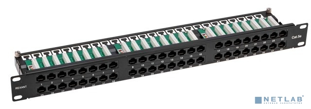 Rexant (02-0033) Панель коммутационная высокой плотности с кабельными органайзерами 19", 1U, 48 портов, UTP, RJ-45, CAT 5e REXANT PRO