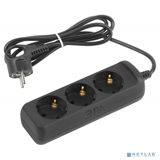 ЭРА Б0057721 Удлинитель электрический UX-3e-1,5m-B с заземлением 3 розетки 1,5 м ПВС 3x0,75мм2 10А черный