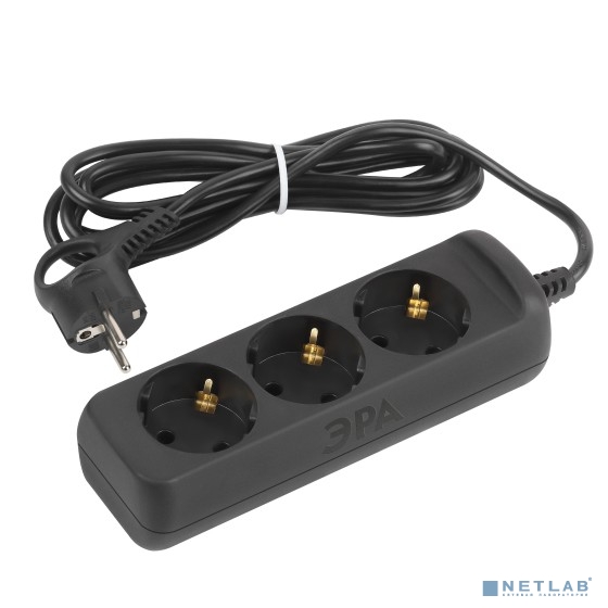 ЭРА Б0057723 Удлинитель электрический UX-3e-5m-B с заземлением 3 розетки 5м ПВС 3x0,75мм2 10А черный