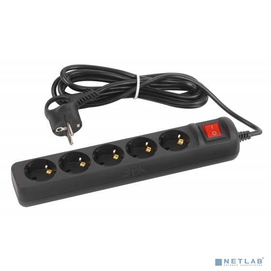ЭРА Б0057731 Удлинитель электрический UX-5es-3m-B с заземлением с выключателем 5 розеток 3м ПВС 3x0,75мм2 черный