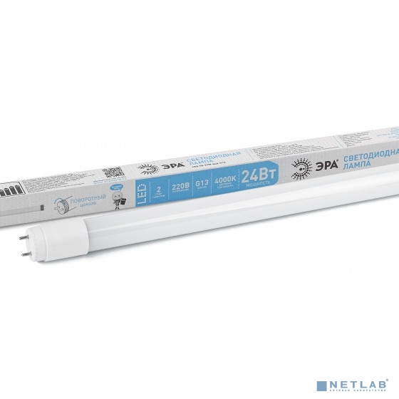 ЭРА Б0033006 Лампа светодиодная STD LED T8-24W-840-G13-1500mm G13 поворотный 24Вт трубка стекло нейтральный белый свет