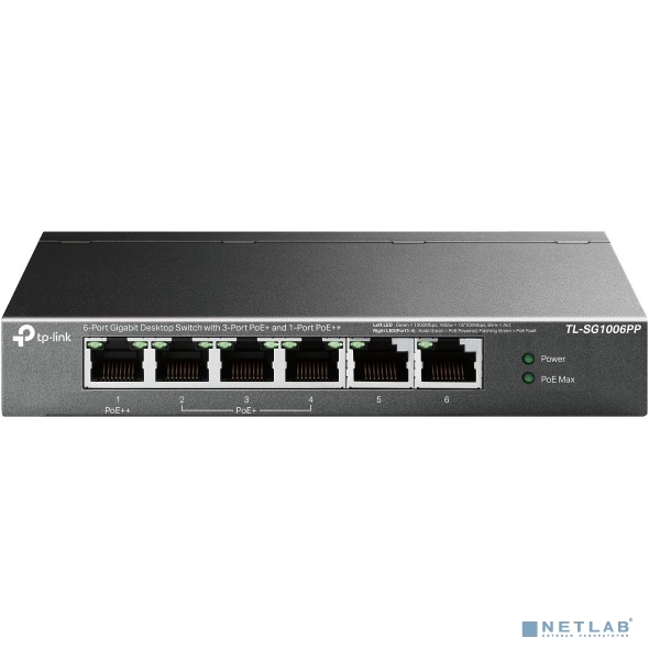 TP-Link TL-SG1006PP Настольный коммутатор с 6 гигабитными портами (3 порта PoE+, 1 порт PoE++)