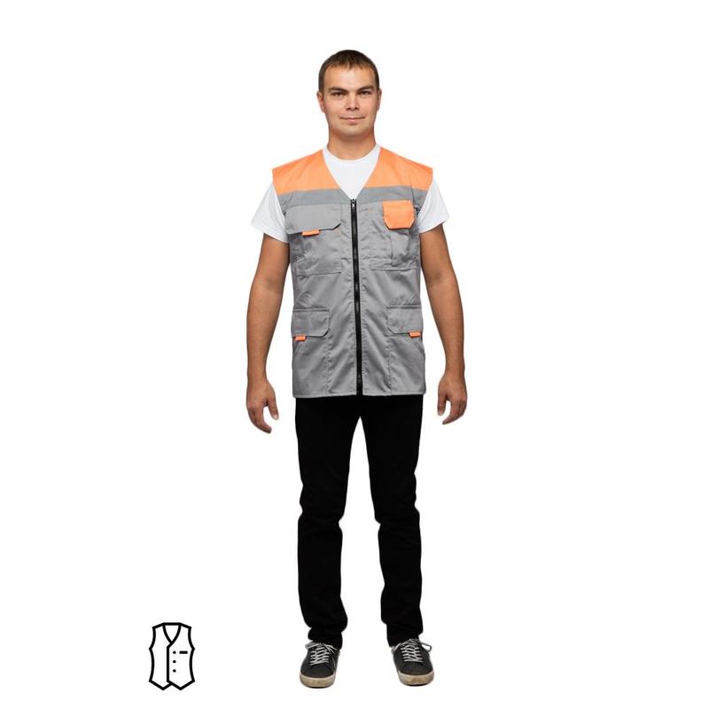 Жилет рабочий летний л30-ЖЛ с СОП серый/оранжевый (размер 44-46, рост 170-176)