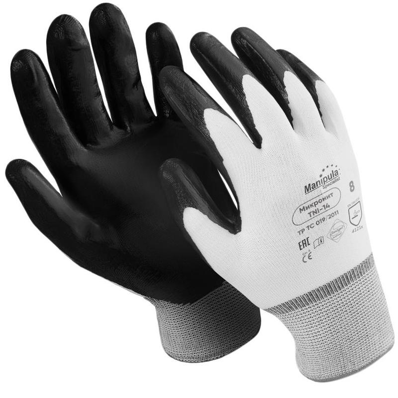 Перчатки рабочие Manipula Микронит TNI-14/MG121 нейлон с нитрилом (13 класс, размер 7, S)