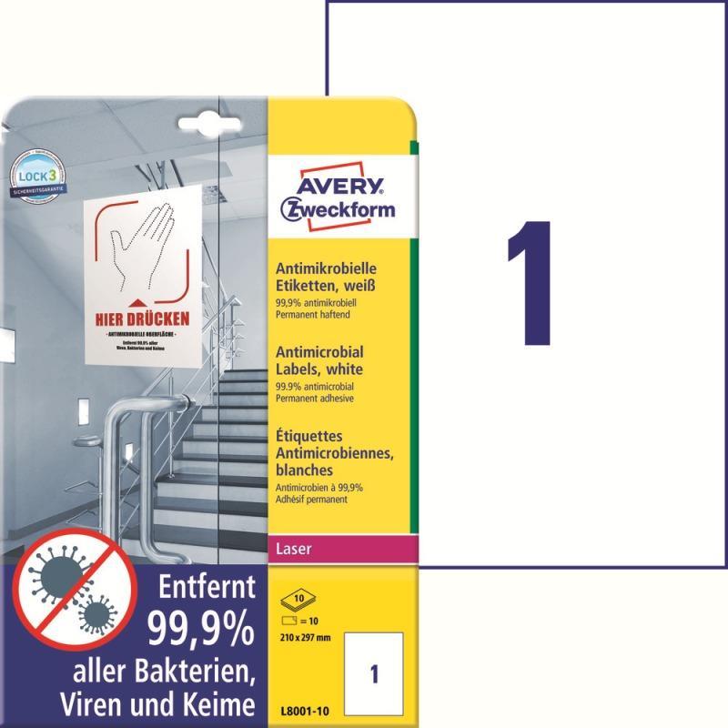 Этикетки противовирусные самоклеящиеся Avery Zweckform (L8001-10) А4 210x297 мм 1 штука на листе белые (10 листов в упаковке)