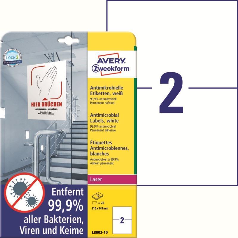 Этикетки противовирусные самоклеящиеся Avery Zweckform (L8002-10) 210x148 мм 2 штуки на листе белые (10 листов в упаковке)