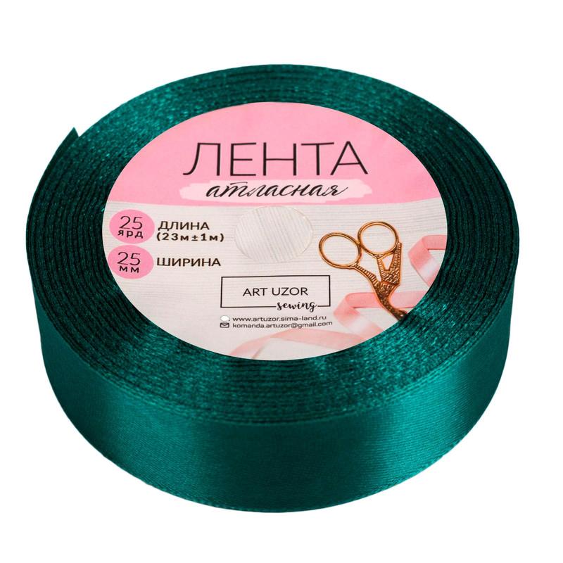 Лента атласная зеленая 25 мм x 23 м (№140 арт.3019805)