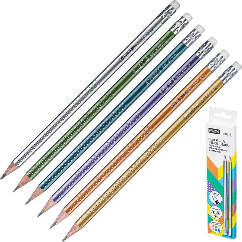 Карандаш чернографитный Attache Selection League НВ заточенный с ластиком (6 штук в упаковке)
