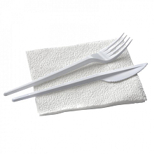 Состав набора вилка, нож, салфетка