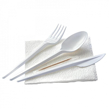Состав набора вилка, ложка, нож, салфетка, зубочистка