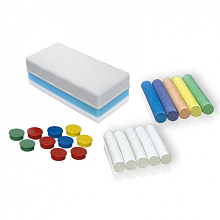 Состав набора губка для мела, магниты, 2 набора мела (белый и цветной)