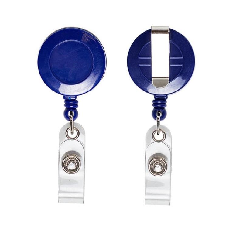 Ретрактор, предназначенный для бейджей, представляет собой брелок с капроновой вытяжной нитью, который работает по принципу катушки. Благодаря встроенному пружинному механизму, нить после использования возвращается в исходное положение. Форма брелка — круглая, диаметр составляет 30 мм. Материал корпуса брелка — устойчивый к повреждениям пластик, внутри находится нить, длина которой 85 см.