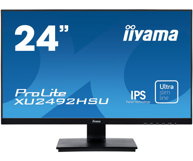 Монитор 23,8" Iiyama XU2492HSU-B1 1920x1080@75Гц IPS LED 16:9 4ms VGA HDMI DP 2*USB 2.0 5M:1 1000:1 178/178 250cd Tilt Speakers Black. Уменьшение голубого свечения, Flicker Free LED. Комплектация: Монитор с подставкой, кабель питания, кабель USB, кабель HDMI, кабель DP, Краткое руководство по началу работы, Руководство по безопасности