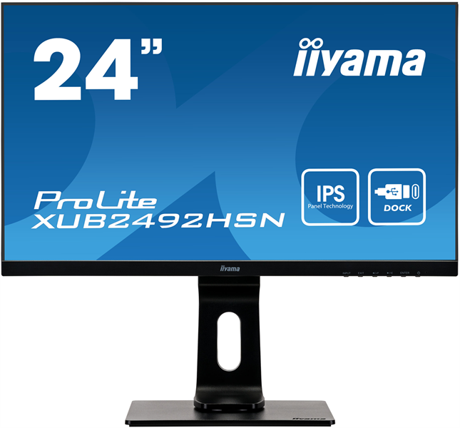 Монитор 23,8" Iiyama ProLite XUB2492HSN-B1 1920x1080@75Гц IPS LED 16:9 4ms VGA HDMI DP 2*USB3.0 USB C dock 80M:1 1000:1 178/178 250cd HAS Pivot Tilt Swivel Speakers Black. Уменьшение голубого свечения, Flicker Free LED. Комплектация: Монитор с подставкой, Пользовательская документация, Комплект кабелей