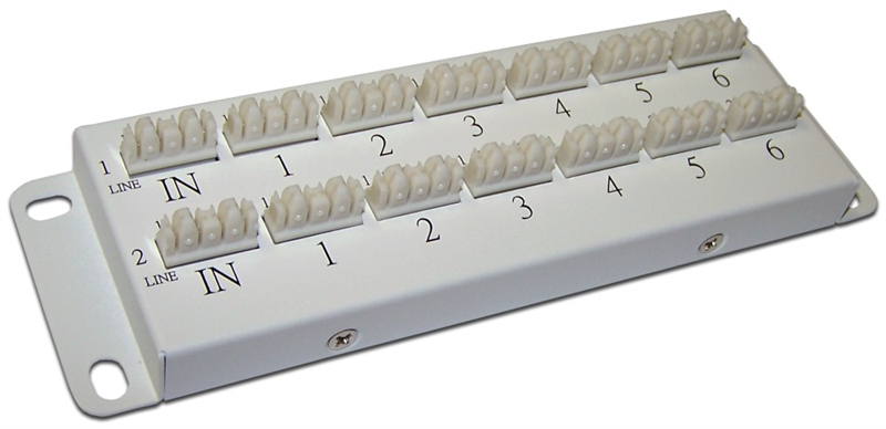 Коммутационная телефонная панель, параллельное подключение 2х6. 2 входных 2-парных IDC-разъема 110-го типа