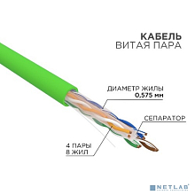 Код производителя U/UTP, CAT 6, нг(А)-LSLTx, 4х2х0,575мм, 23AWG, INDOOR, SOLID, зеленый, 305м (01-0171)