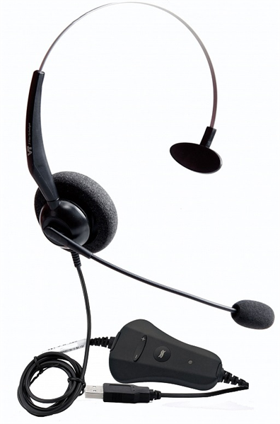 VT Проводная моноауральная гарнитура, Узкополосный звук, разъем USB.. Длина провода: 3 м; Сопротивление: 150 Ом; Чувствительность: 100 дБ